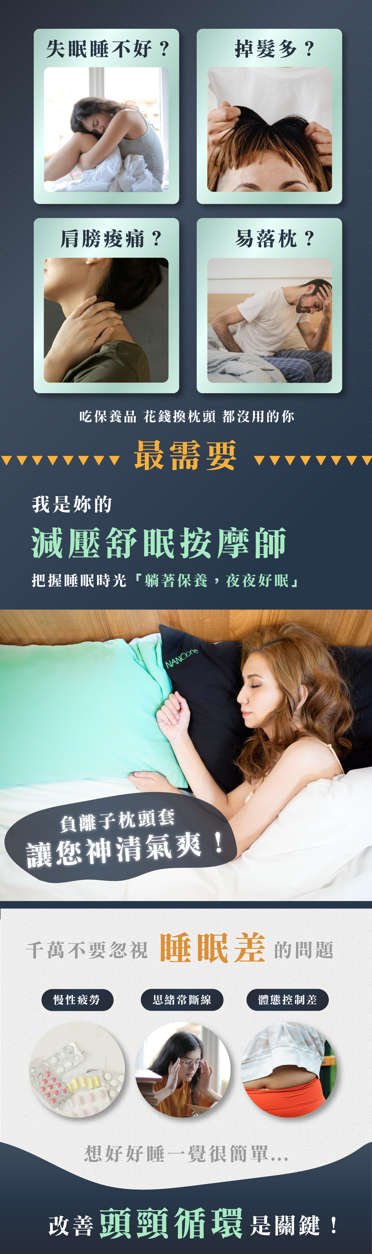 NANOone 負離子舒眠循環枕頭套 - 午夜藍