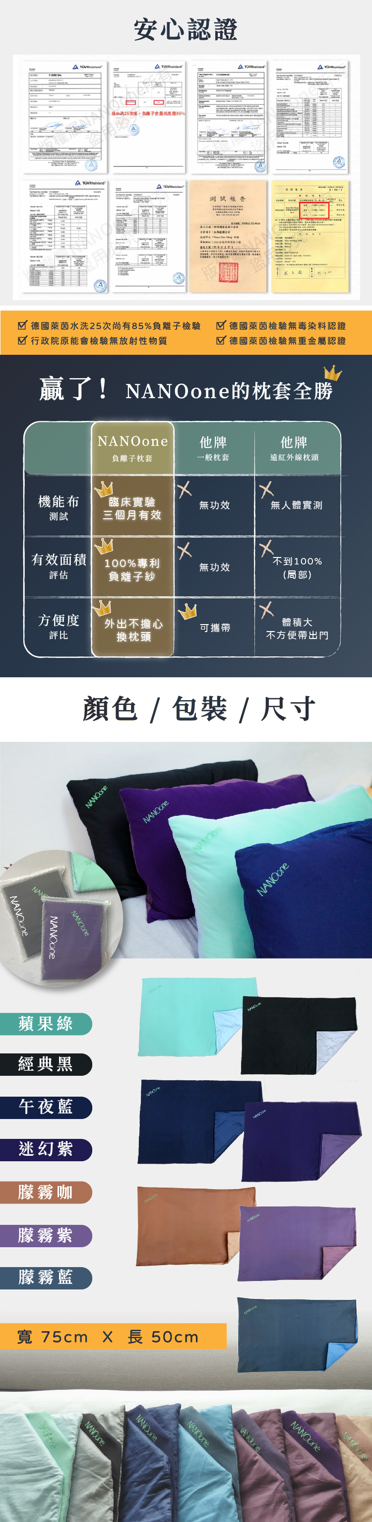 NANOone 負離子舒眠循環枕頭套 2入 (3色)